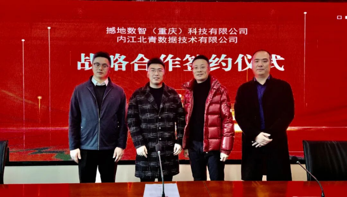 2023年2月22日,撼地数智(重庆)科技有限公司(简称“撼地数科”)与内江北青数据技术有限公司达成战略合作,并举行签约仪式。撼地数智(重庆)科技有限公司CEO贺光灿、撼地数智(重庆)科技有限公司西南区负责人廖竟成、内江北青数据技术有限公司总经理钟健夫、内江北青数据技术有限公司副总经理易念伟参与了此次签约仪式。