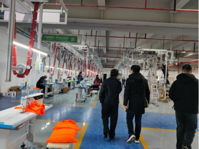 调研期间,四川捷睿达服饰办公室主任徐女士向调研组全面介绍了公司的历史沿革、业务发展格局及当前生产运营现状,并带领北青数据团队实地参观纺织制品生产线。通过现场观摩,调研组深入掌握了从原材料加工到最终成品产出的完整生产流程,为后续精准诊断工作奠定坚实基础。