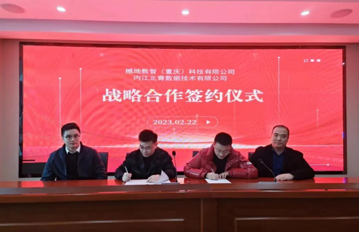 2023年2月22日,撼地数智(重庆)科技有限公司(简称“撼地数科”)与内江北青数据技术有限公司达成战略合作,并举行签约仪式。撼地数智(重庆)科技有限公司CEO贺光灿、撼地数智(重庆)科技有限公司西南区负责人廖竟成、内江北青数据技术有限公司总经理钟健夫、内江北青数据技术有限公司副总经理易念伟参与了此次签约仪式。